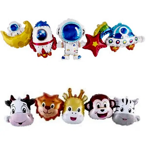 Karakterli folyo balonlarımız genellikle canlı varlıkların resimlerini içerir. Bebek, aslan, kaplan, dinozor… Kısacası partinize özellikle enerji ve neşe katan karakterler! Özellikle safari, uzay ya da yenidoğan konseptli organizasyonlarda oldukça uyumlu bir atmosfer yaratır. İsterseniz setler halinde, isterseniz tek tek satın alarak kendi tasarımlarınızı oluşturabilirsiniz.